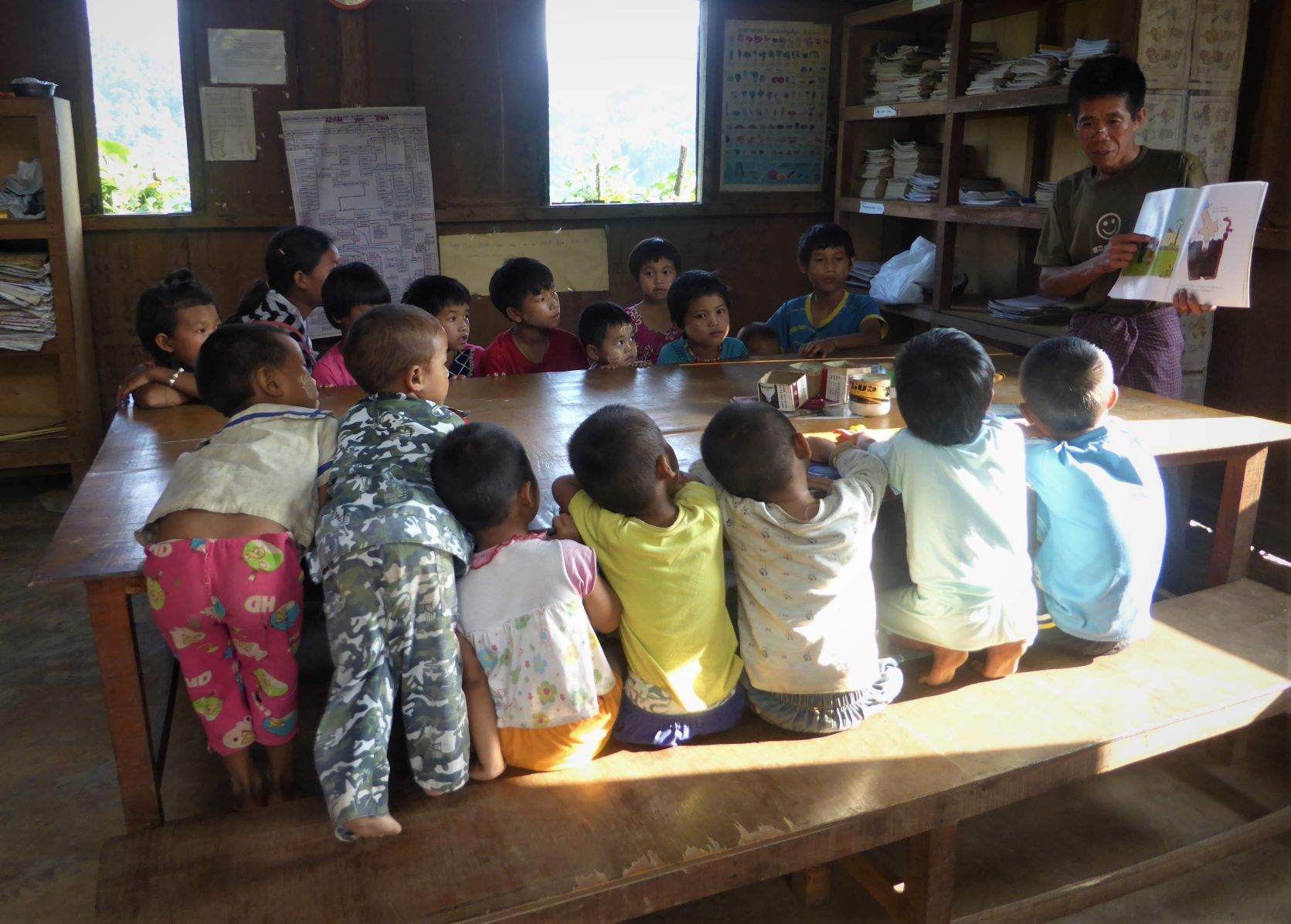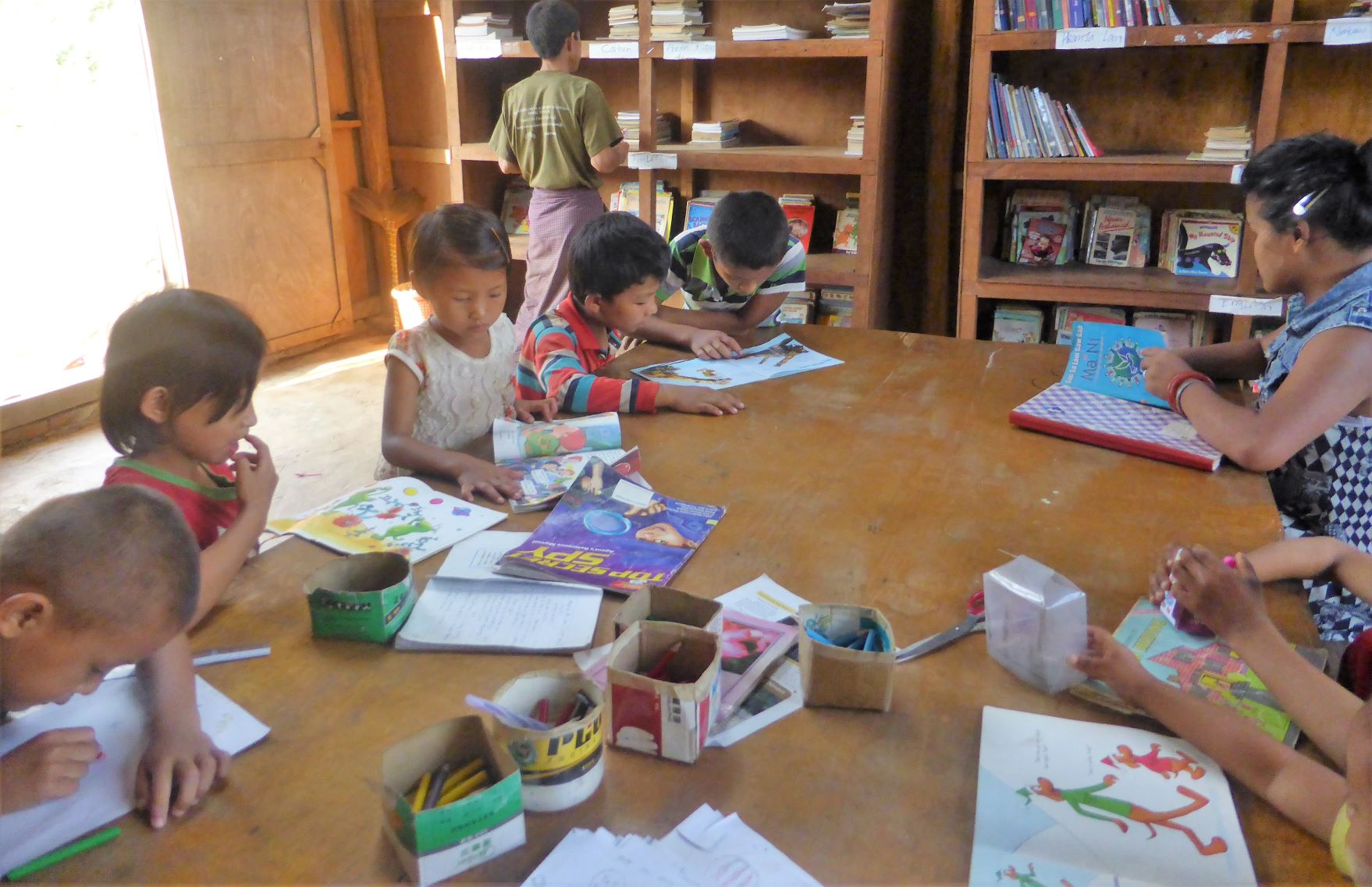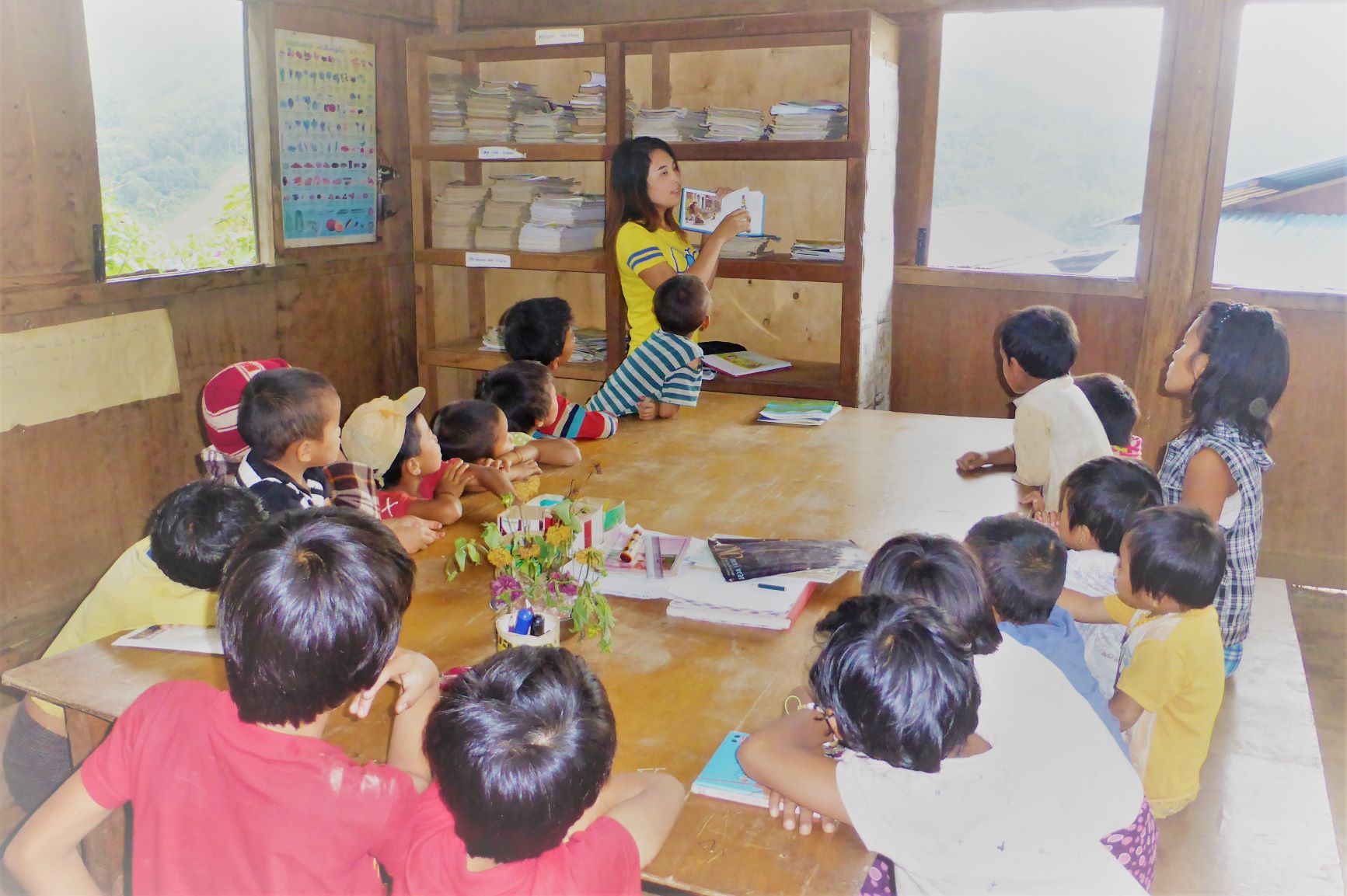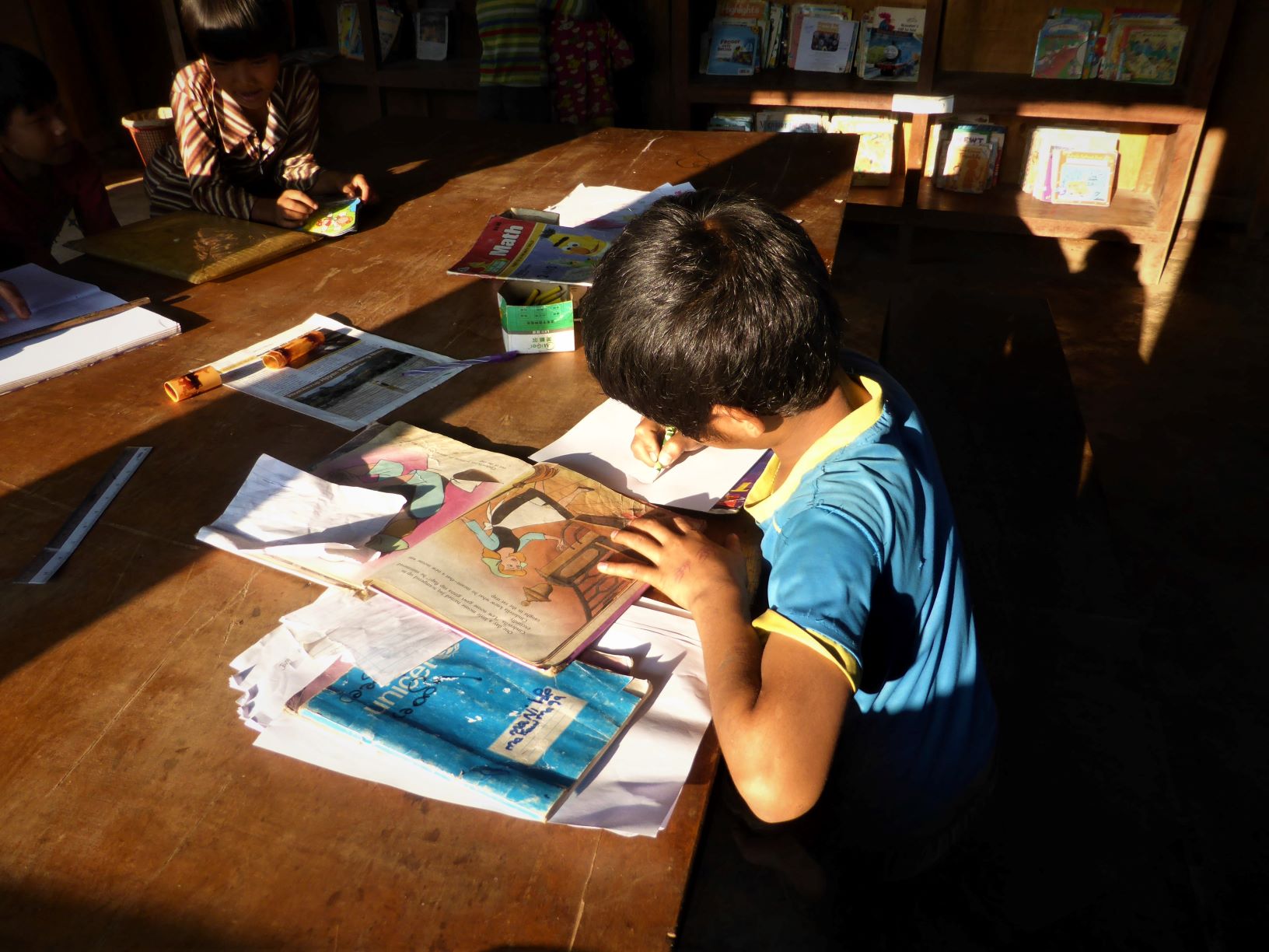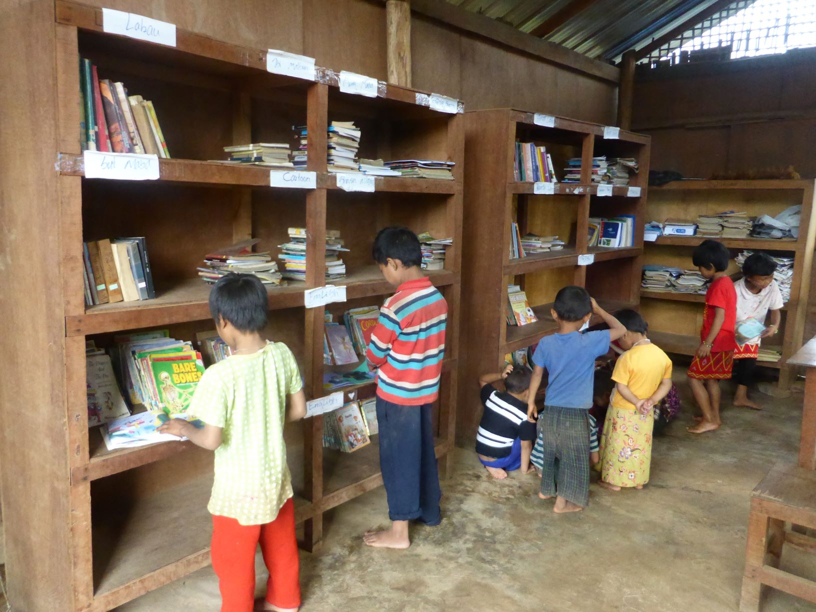IDP (Internally Displaced Person) camp Camp classroom Camp primary school classroom Camp school dining area Camp school bell Student chopping wood to make toy car Student carving a wheel for toy car Camp water from mountain stream IDP Camp children Camp school playground Camp school playground JEP working with local NGO to help set up a library in IDP camps Books shipped via China arrived at IDP camp Arranged & organised Library opened for use Children using library after school Class activity – story telling Class activity – story telling Class activity – drawing Lessons in newer classrooms Lesson activities